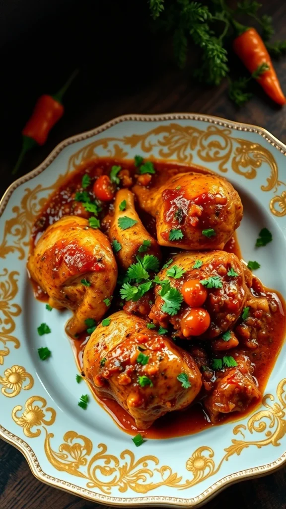 Un soir d’hiver glacial, alors que la neige recouvrait tout le village, ma grand-mère sortit un vieux carnet jauni par le temps. "C’est une recette que j’ai apprise d’un marchand itinérant venu des terres lointaines", murmura-t-elle en souriant mystérieusement. Le parfum des épices qui embaumait la cuisine semblait raconter une histoire de voyages et d’aventures. Ce poulet épicé, avec ses saveurs réconfortantes et son caractère envoûtant, a transformé cette soirée en un véritable festin chaleureux, dissipant le froid et rapprochant toute la famille autour de la table.